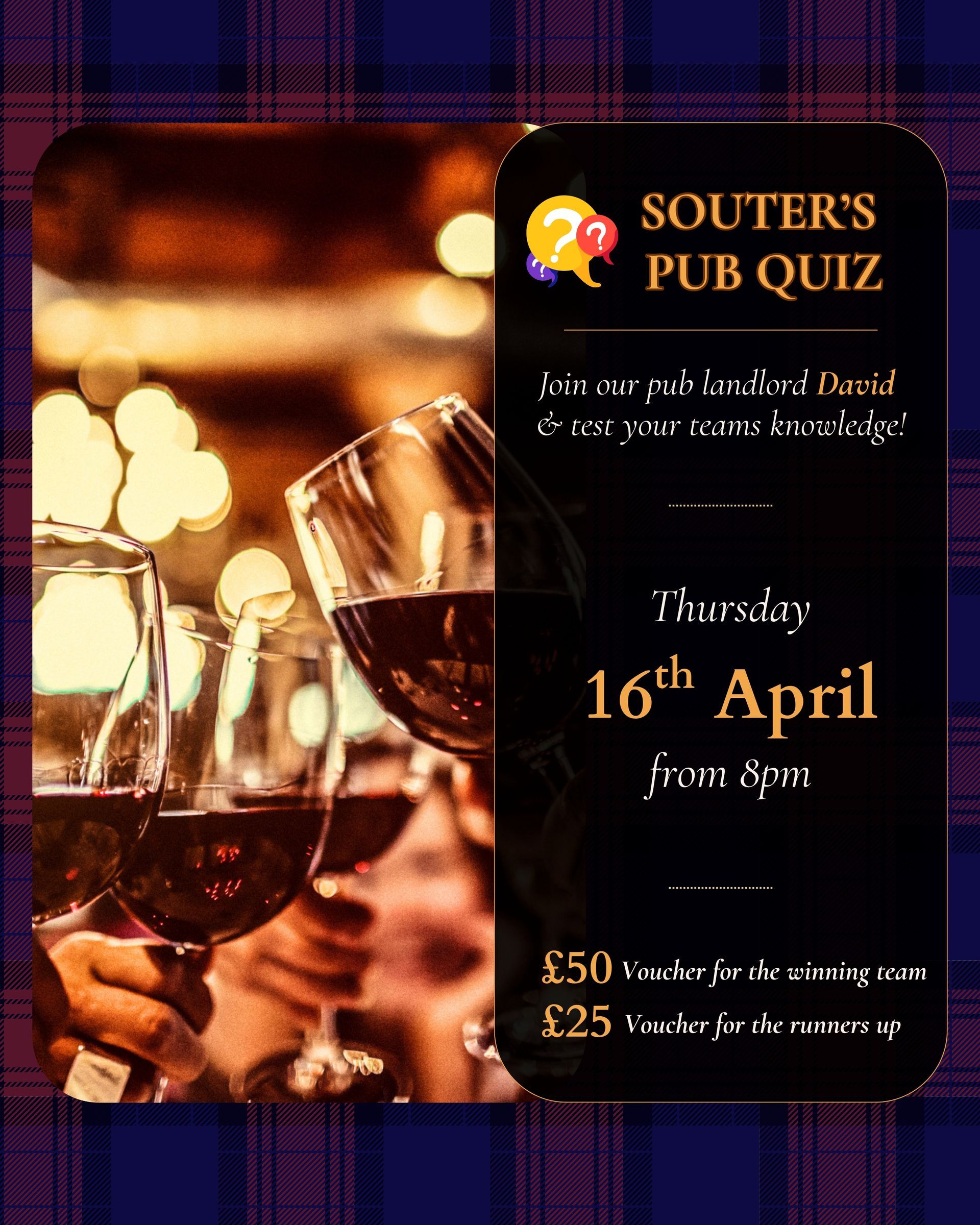 At Souter's Inn, there’s always something to look forward to. Our live events are at the heart of what we do, bringing people together for memorable nights filled with great food, drinks and atmosphere.